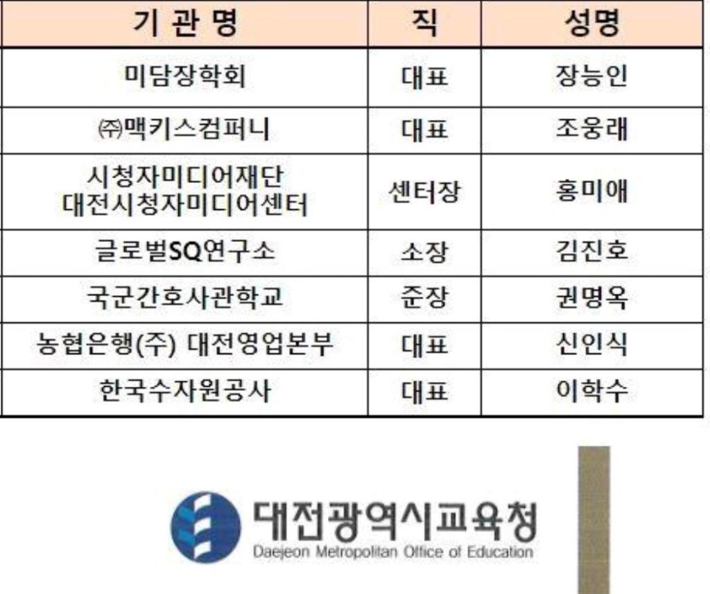 대전광역시교육청은 매년 청소년들의 꿈과 끼를 길러주고 대전광역시교육청의 역점 사업인 좋은인재기르기 협력단으로 많은 기여를 한 기관을 우수기관으로 선정해 표창장과 감사패를 전달하고 있습니다.